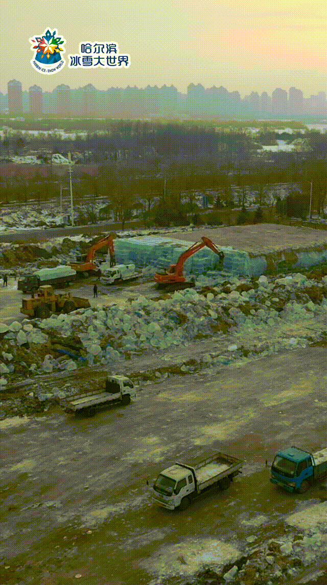 早在入冬之初,哈尔滨冰雪大世界就已积极推进各项工程建设的准备,平整场地、检修设备、堆土、搭架......哈尔滨冰雪大世界内各项非冰建设目前已全部完成的同时,去年冬天储藏的3万立方米“存冰”也被取出用于冰建景观建设,为“战胜”暖冬增加了极大的胜算。